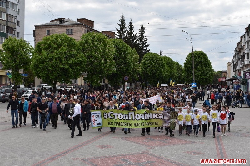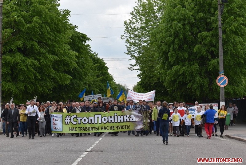 10 травня жителі міста Новограда-Волинського, а також Новоград-Волинського і Баранівського районів пройшли центральною вулицею міста, від пам'ятника Т.Г. Шевченку (район автовокзалу) до площі Лесі Українки, де відбулося народне віче «СТОППОНІНКА» – в знак протесту проти масового забруднення річок Хомора та Случ.