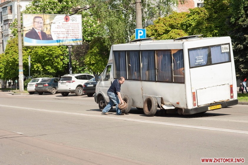 На вулиці Київській, неподалік центрального автовокзалу Житомира, у маршрутки №106 під час руху відпало колесо.