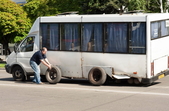 За словами очевидців події, колесо у маршрутки відлетіло під час руху, при цьому пошкодило легковий автомобіль, що рухався в зустрічному напрямку.