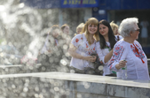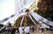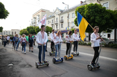 на обличчях. Молодь на самокатах і сігвеях, малюки в дитячих візочках - усі в оригінальних, з неповторними візерунками сукнях та сорочках, дехто навіть своїх домашніх улюбленців одягнув в українське вбрання.