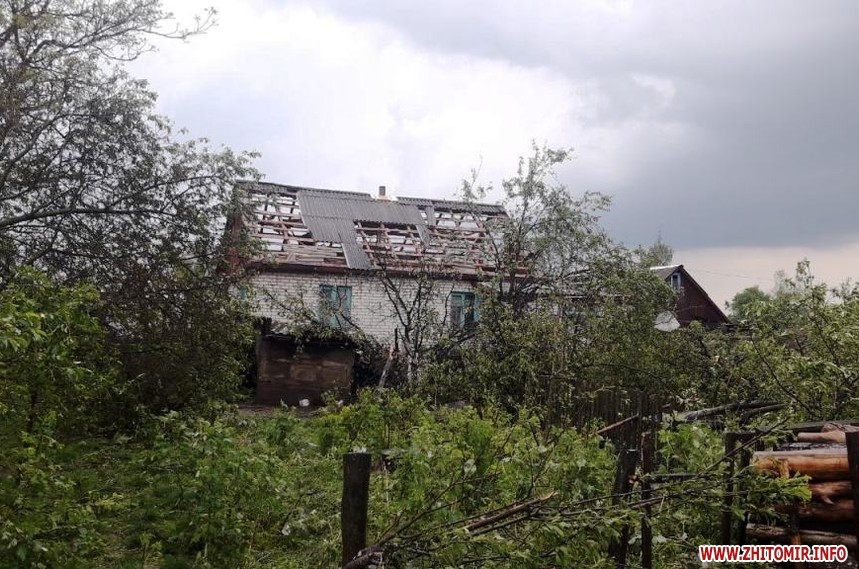 «16 травня на території Новоград-Волинського та Ємільчинського районів Житомирської області пройшов буревій. Внаслідок негоди в селах Пилиповичі, Городище та Анета Новоград-Волинського району повністю пошкоджені покрівлі 8 житлових будинків та частково пошкоджені дахи ще в близько 41 оселі та господарських спорудах. До того ж, проведені аварійні роботи по прибиранню 3 повалених дерев, що впали на проїжджі частини доріг та пошкодили лінії електропередач. А в населених пунктах Березинки та Адамове Ємільчинського району частково зруйновані дахи близько 20 житлових будинків та споруд. У місцевій ЗОШ с. Березинки зірвано з покрівлі 20 листів шиферу», - йдеться у повідомленні рятувальників.