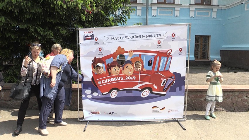 «Ми приїхали з командою з міста Чернівці. Взагалі ми їдемо туром по українських містах до Дня Європи для того, щоб розповісти про Угоду про асоціацію України з ЄС. Ми вже були в Чернівцях, Вінниці. Ми зрозуміли вже, навіть, проїхавши два міста, що українці дійсно знають дуже мало, що таке Угода про асоціацію, що це не є членство України в ЄС та які вона дає можливості. Для студентів - це можливість не тільки подорожувати, але й навчатися на рівні з європейськими студентами на безкоштовній основі, наприклад, їхати на рік чи на півроку. Є неакадемічна мобільність, їхати на обмін, на волонтерство. Для всіх людей це зона вільної торгівлі, яка в нас є. Збільшення кількості експорту української продукції на зовнішні європейські ринки. Для громадських організації - як залучити кошти, як реалізовувати спільні проекти спільно з Європейським Союзом. Це основні речі, але їх є ще набагато більше. Наша мета - показати в такій інтерактивній формі, що це просто і всім доступно»,- розповідає менеджер проекту «ЄврОбус» Юлія Козак.