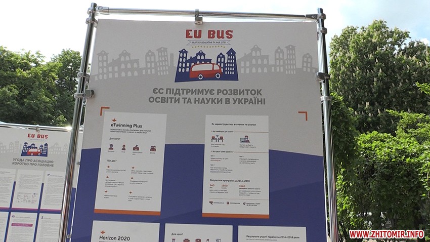 До Житомира 17 травня приїхав автобус, який мандрує українськими містами задля поширення інформації щодо Угоди про асоціацію з ЄС та можливостей, які відкриває цей документ для молоді, бізнесу, громадськості та влади. На Старому бульварі для житомирян облаштували інформаційні стенди, фото-зони та ігрові локації з вікторинами.