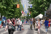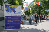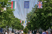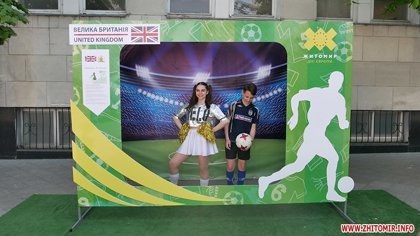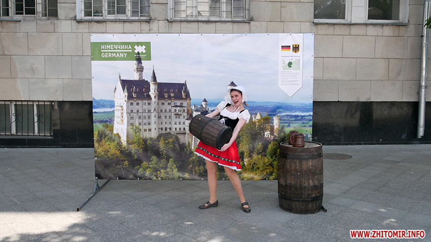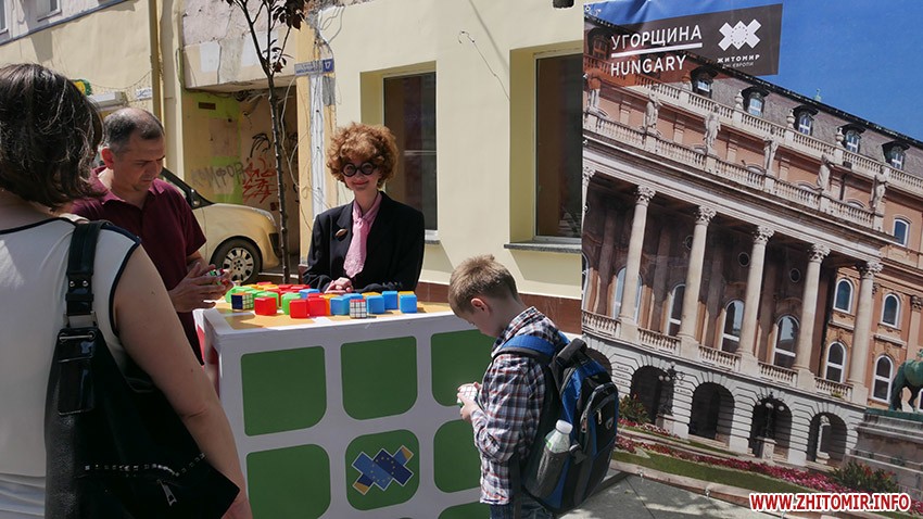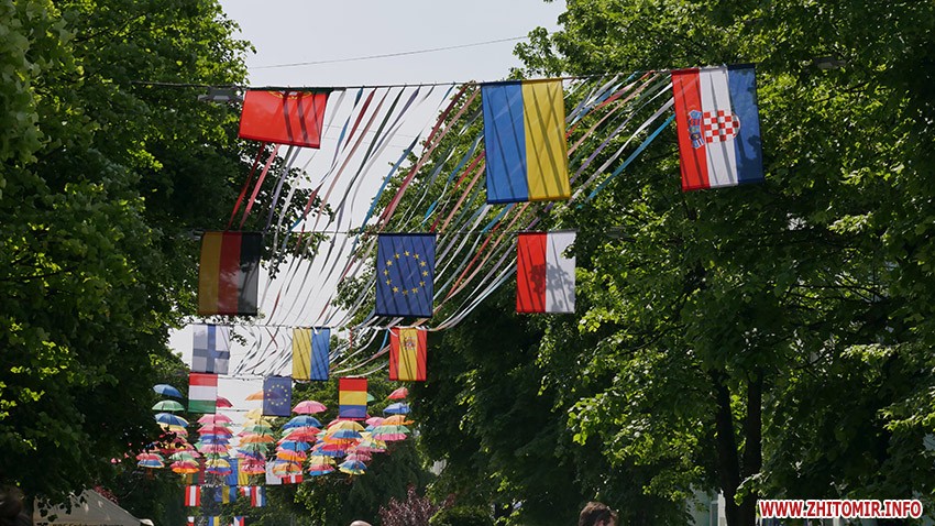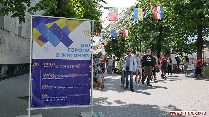 У суботу, 18 травня, Житомир святкує День Європи. З самого ранку на прикрашеній прапорами держав ЄС вулиці Михайлівській встановили 28 фотозон, аби житомиряни змогли «помандрувати» країнами Європи.