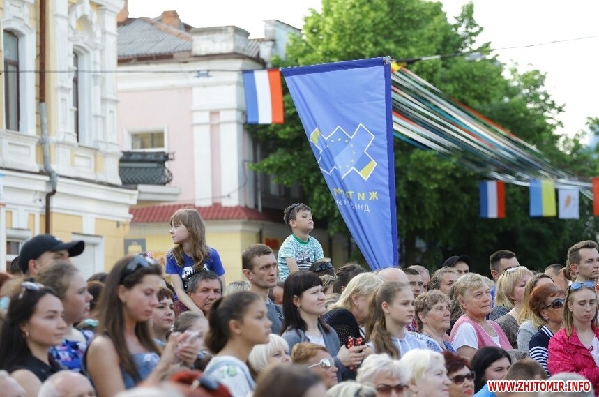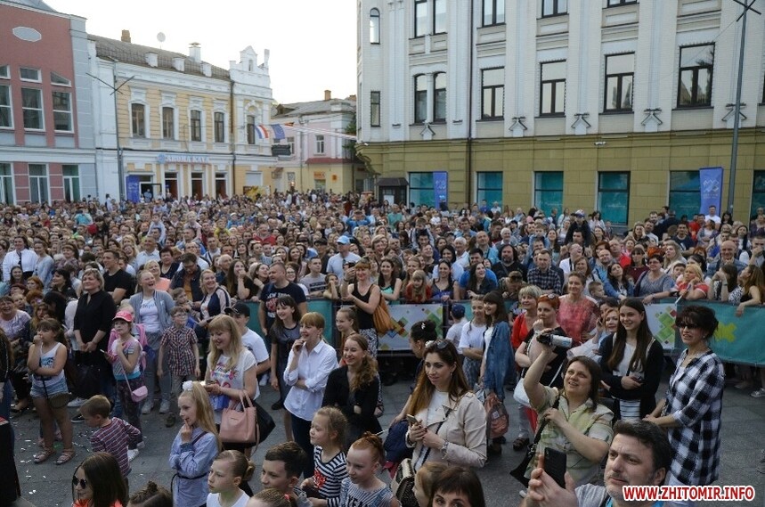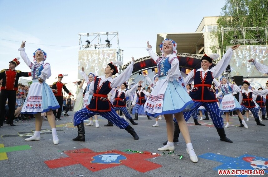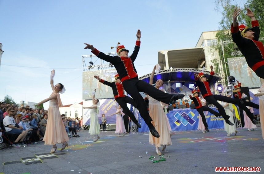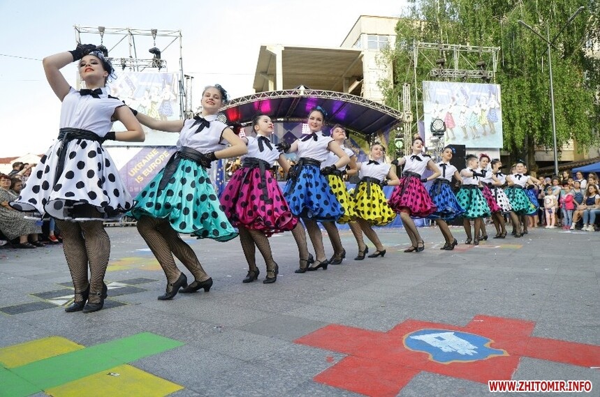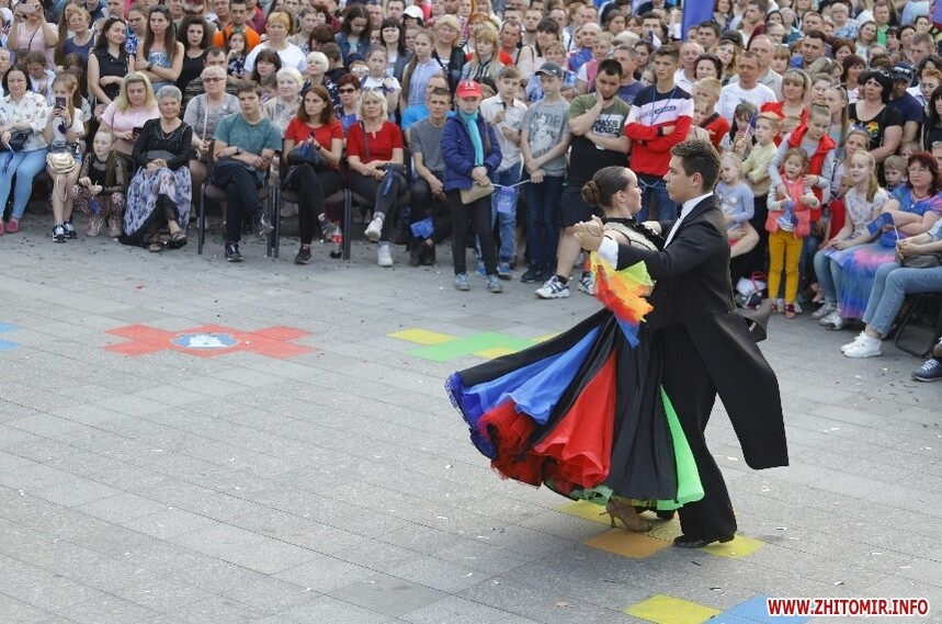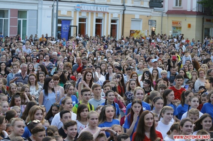 О 18.00 на пішохідній вулиці міста стартував танцювальний марафон, який розпочався з виступів творчих колективів Житомира і переріс у драйвове дійство.