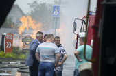 «На пожежі наразі працює 10 екіпажів ДСНС та 9 екіпажів патрульної поліції. В даний час перекрито рух по вулиці Східній. Хвилин 5 тому вдалося загасити полум’я. За попередньою інформацією спалахнула цистерна з паливом. У результаті події одна людина отримала опіки полум’ям та була госпіталізована», - повідомили в патрульній поліції.