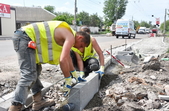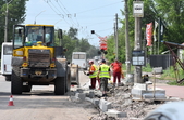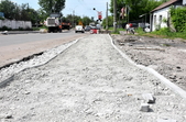 Наразі підрядник встановлює бордюри, робить відсип тротуарів.