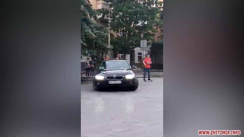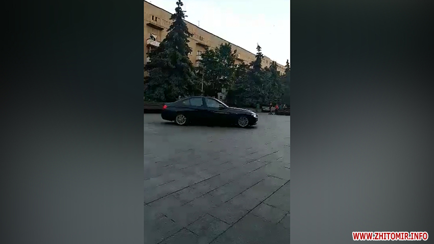 22 травня житомиряни зняли на відео, як автомобіль ВМW заїхав на територію скверу з фонтаном на майдані Соборному та почав накручувати віражі та демонструвати свою майстерність у дрифті.