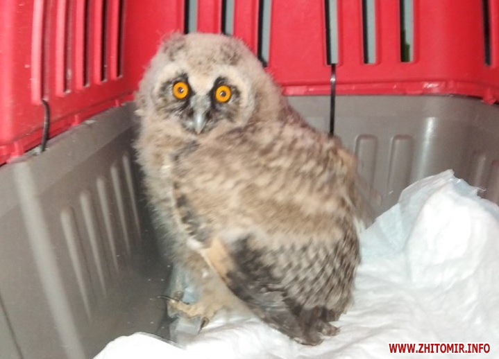 «23 травня поточного року на телефон «Гарячої лінії» Державної екологічної інспекції Поліського округу надійшов дзвінок від стурбованих мешканців вулиці Польової м. Житомира, які повідомили, що біля їх будинку знаходиться молодий птах – сова, який випав з гнізда та пошкодив собі крило. До приїзду екологів небайдужі громадяни влаштували чергування біля птаха, щоб його не знищили бродячі собаки чи коти. Державний інспектор з охорони навколишнього природного середовища Поліського округу відреагував на звернення та з виїздом на місце встановив, що це пташеня вухатої сови, яке не здатне до самостійного існування», - йдеться в дописі від 24 травня.