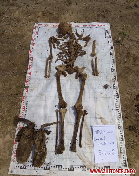«24.05.19 групою ІПО «Пошук» в Пулинському районі біля села Соколів було знайдено братську могилу радянських солдатів та командирів, які загинули в липні 1941 року. Всього в ямі було встановлено залишки 9 людей», - йдеться в дописі.