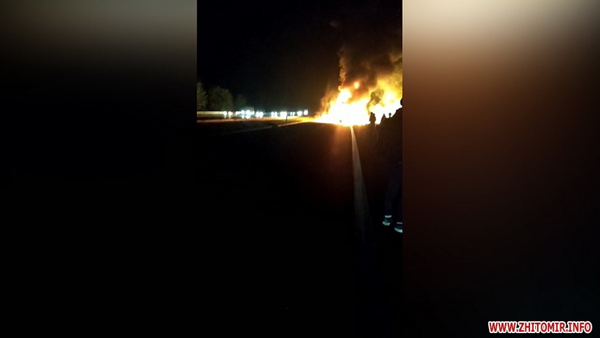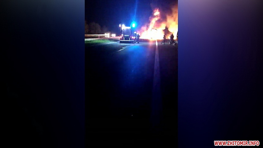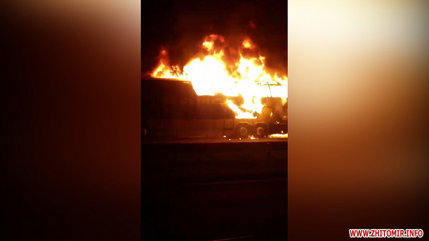 На щастя, травмованих немає. Одне з джерел повідомляє про двох житомирян в автобусі, інше – про трьох хлопців, які їхали з Житомира в Польщу на заробітки (один з них відзняв відео пожежі).
