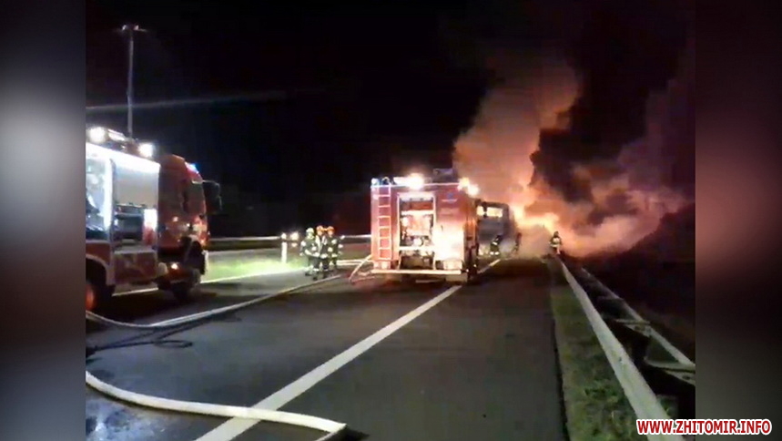 У ніч на 26 травня в 10 кілометрах від польського міста Краків згорів автобус Київ-Прага, в якому їхали пасажири з Житомира.