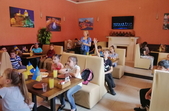 Однак перед обідом на третьокласників чекала міні-вікторина від власника закладу. Школярі виявилися «підкованими» і легко відповідали на запитання. Їм відомо, що День незалежності Грузії відзначається 26 травня, що столиця Грузії – місто Тбілісі, що 85% території цієї країни лежить у гірській місцевості. А ще, що грузини – найгостинніша у світі нація, для якої гість – це Божий дар. Гість може не знімати взуття, а в гостях грузини спершу цілують старих і дітей, а далі – решту людей.
