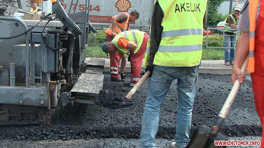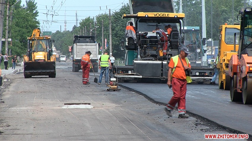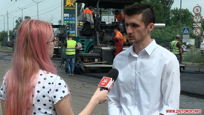«Сьогодні вночі почалися підготовчі роботи, зранку зробили пролив, і безпосередньо зараз триває вже укладання самого асфальту. Укладається асфальт в два шари, зараз укладають чорновий шар, тобто крупнозернистий, з великим щебнем асфальт, який буде основою. Потім буде ще вирівнюючий шар вже більш дрібного асфальту, мета якого згладили і дати рівну дорогу. Поліція стоїть і на початку, і на кінці ділянки, де здійснюється ремонт. Але не просто їм з нашими водіями, всі хочуть нормальних доріг, ремонту, але ці вимушені затримки і обмеження руху терпіти ніхто не хоче», - розповідає заступник Житомирського міського голови Дмитро Ткачук.