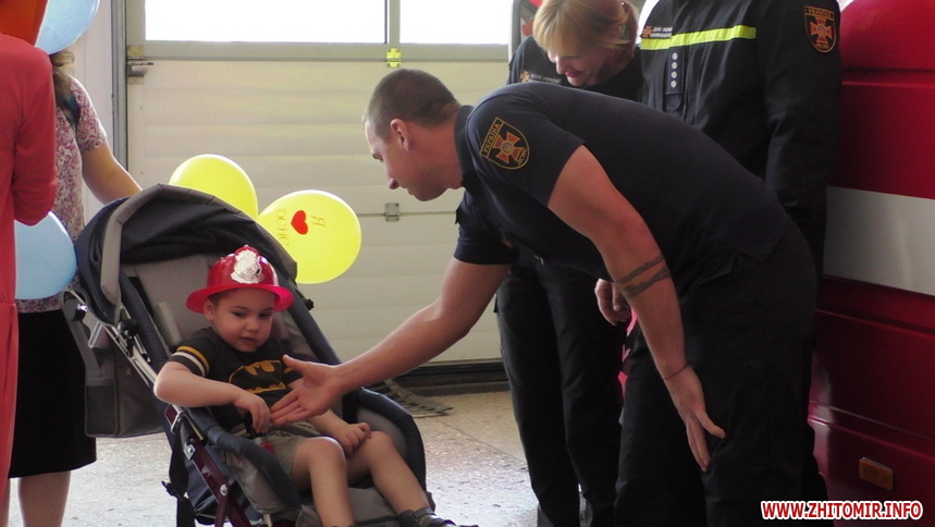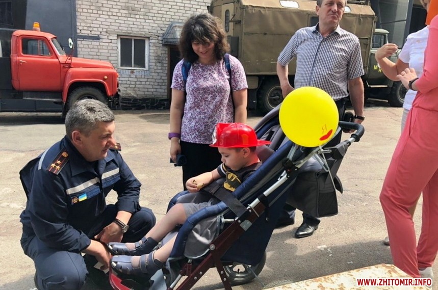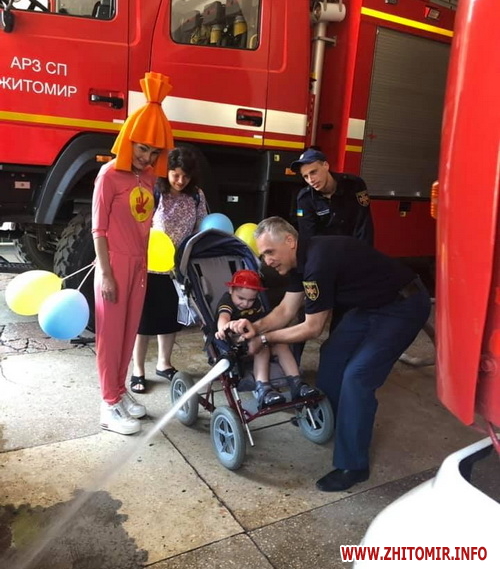 «На жаль, з 3-х років дитина тяжко захворіла і не може самостійно ходити. Однак бажання стати сильним і сміливим вогнеборцем, гасити полум’я та рятувати людей у нього не зникло. Аби розбавити життєві фарби Іллі, його батьки звернулися до Житомирської міської ради з проханням влаштувати екскурсію в пожежну частину. І вже сьогодні, 3 червня, мрія хлопчика здійснилась!», - йдеться у повідомленні.
