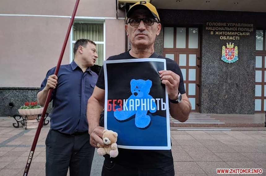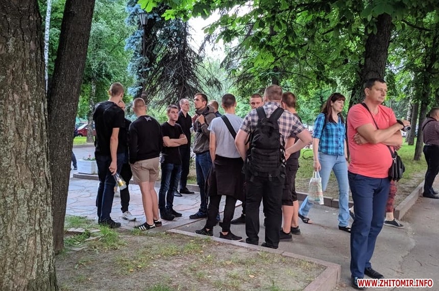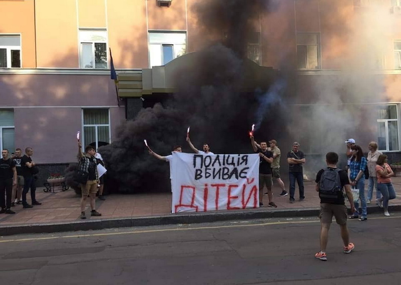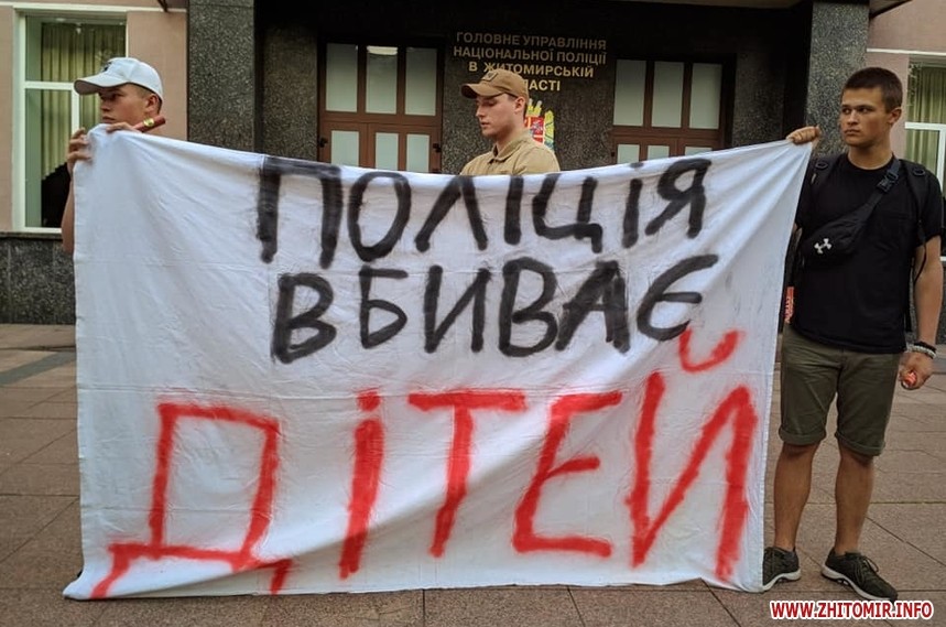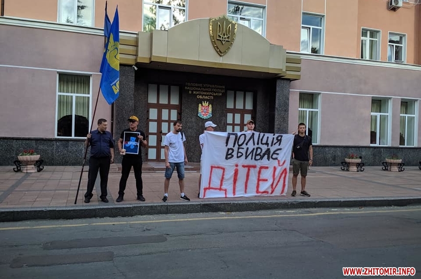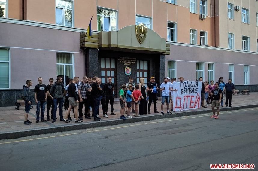 Зо два десятки людей на 19 годину 4 червня прийшли до приміщення Головного управління Національної поліції у Житомирській області, що на Старому бульварі, 5, виказуючи суспільне обурення смертю 5-річного хлопчика, якого 31 травня підстрелили правоохоронці у Переяславі-Хмельницькому Київської області.