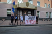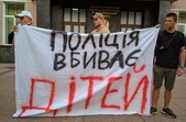Активісти розгорнули великий плакат з написом «Поліція вбиває дітей».