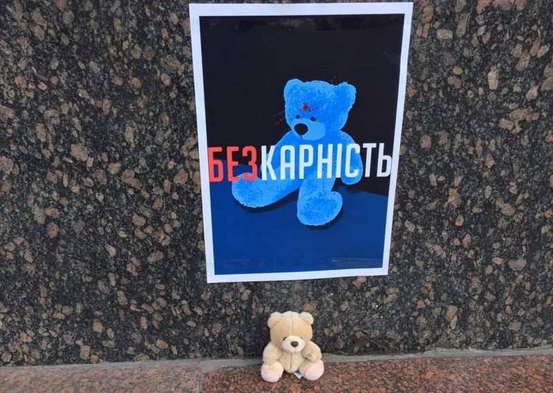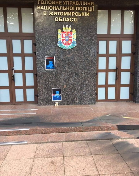 Активісти принесли до будівлі Нацполіції іграшкового ведмедика.