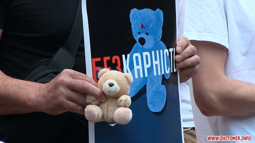 Ввечері 4 червня більше двох десятків активістів зібралися на акцію «Безкарність вбиває» під стінами Головного управління Нацполіції в Житомирській області у зв’язку з нещодавньою новиною про вбивство 5-річного хлопчика в Переяславі-Хмельницькому. У тяжкому злочині обвинувачують двох поліцейських, які вирішили задля забави постріляти в бляшанки з пістолета та влучили в голову маленького хлопчика.