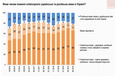 Дві третини опитаних – за те, щоб українська мова була єдиною державною мовою. 21% виступають за надання російській державного статусу, ще 11% – за її офіційний статус. Найбільше тих, хто виступає за статусність російської мови, – серед мешканців Сходу, тих, хто спілкується нею постійно, а також виборців «Опозиційної платформи – За життя».