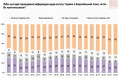 Підтримка прозахідного вектору надалі переважає: 62% – за вступ України до Європейського Союзу (22% – проти), 53% – у НАТО (31% – проти). При виборі кількох векторів економічної інтеграції – 57% за вступ до ЄС, 24% – за рівновіддаленість від Росії та Заходу, 10% – за вступ до Митного Союзу. Підтримка європейської та євроатлантичної інтеграції відчутно переважає в центральних та західних регіонах, серед виборців «Європейської солідарності», партії «Голос» та «Громадянської позиції».