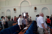Станом на 8:00 у сесійній залі були присутні менше 20 депутатів з 42. Найдисциплінованіша – фракція Блоку Петра Порошенка, з п’яти депутата від Опозиційного блоку немає жодного.