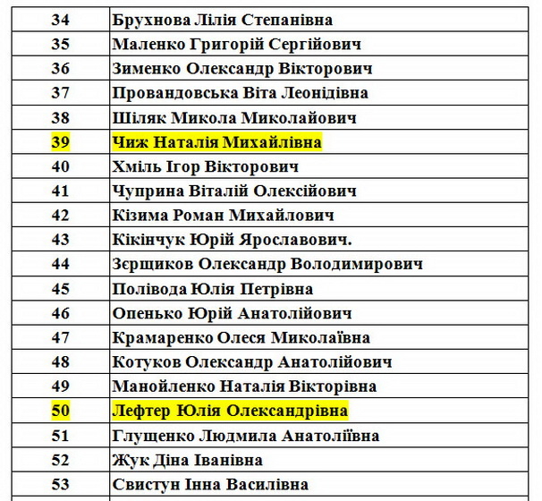 В оприлюдненому партійному списку є 105 людей, серед них – представники Житомирської області: 39 номер – Наталія Чиж, секретар Житомирської міської ради, 50 номер – Юлія Лефтер, секретар Бердичівської міської ради, 74 номер – Віктор Курбатов, депутат Баранівської міської ОТГ.