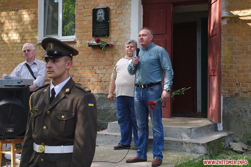 У військовому містечку Висока Піч Житомирського району відкрили меморіальну дошку загиблому розвіднику Анатолію Потєхіну.