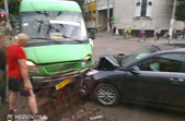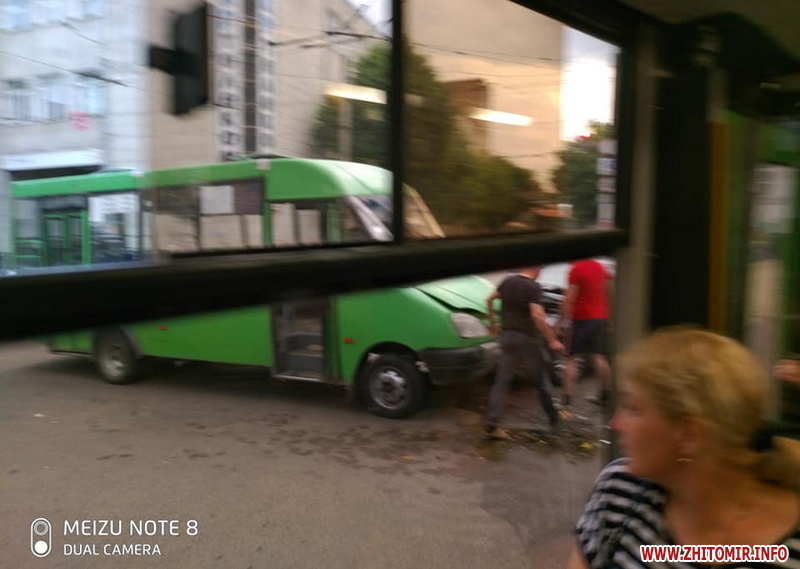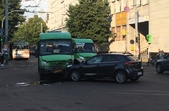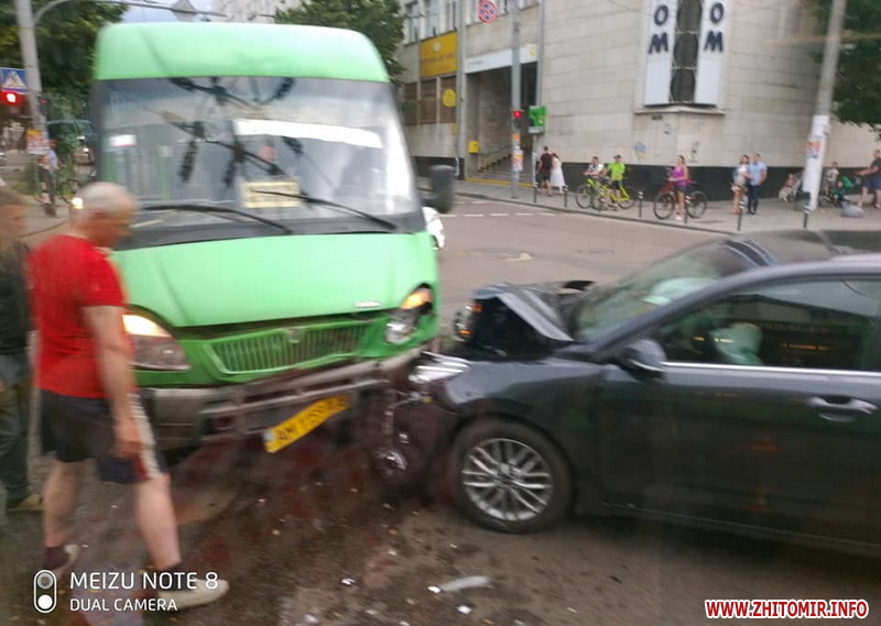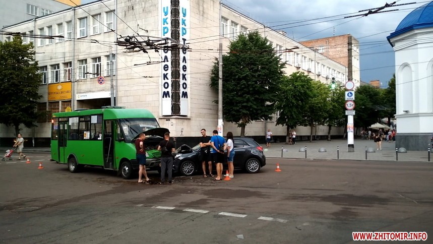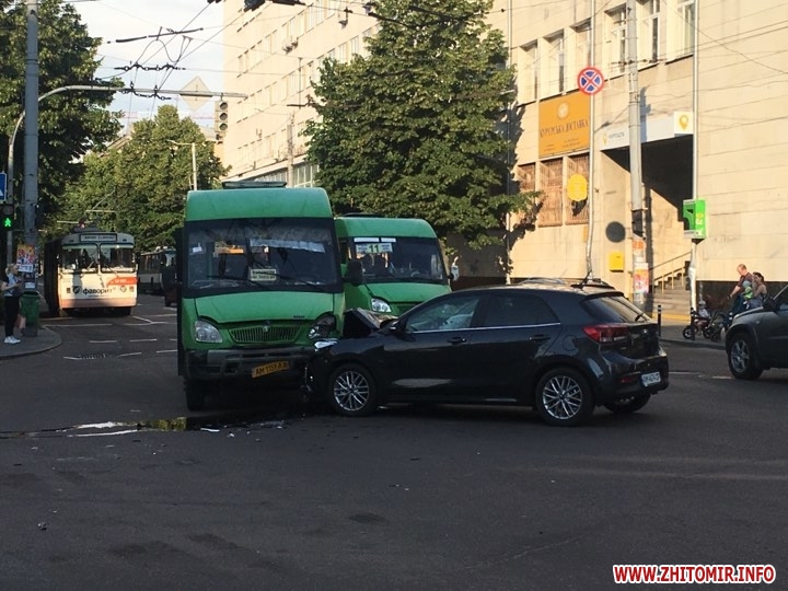 Біля будівлі «Укртелекому» на вулиці Київській у Житомирі не поділили дорогу маршрутне таксі та легковик.