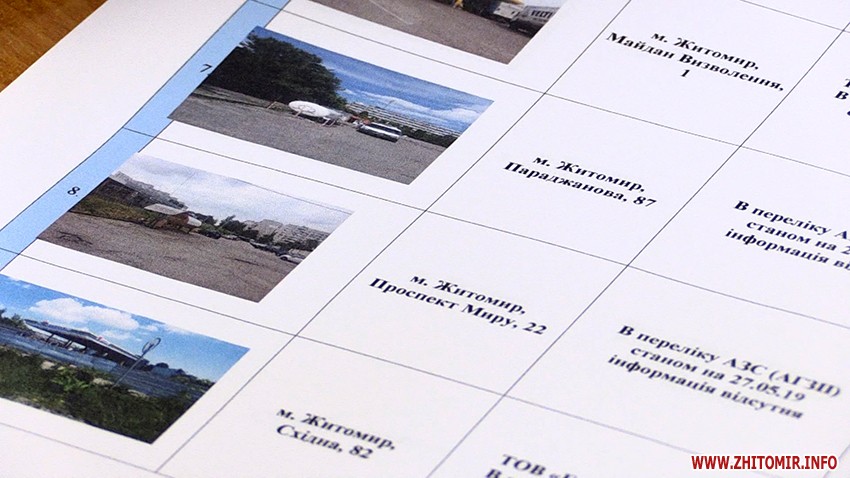 У письмовому переліку автозаправних станцій та автозаправних пунктів, розміщених на території Житомира та про які не знають ДСНС та Держпраці, який складено робочою групою за підсумками роботи, йдеться про наступні адреси: