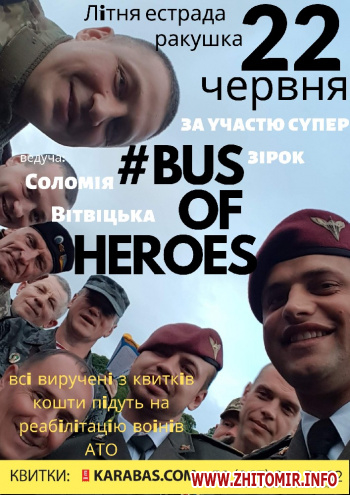 У суботу, 22 червня 2019, в літньому театрі «Ракушка» в Житомирі відбудеться концерт вітчизняних виконавців, кошти від якого підуть на реабілітацію воїнів АТО.