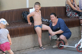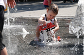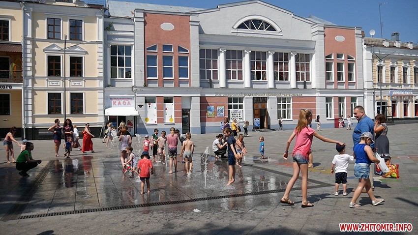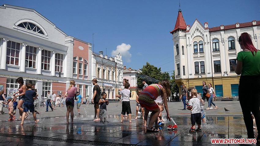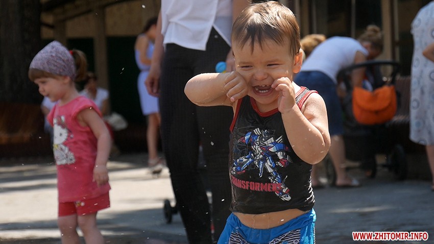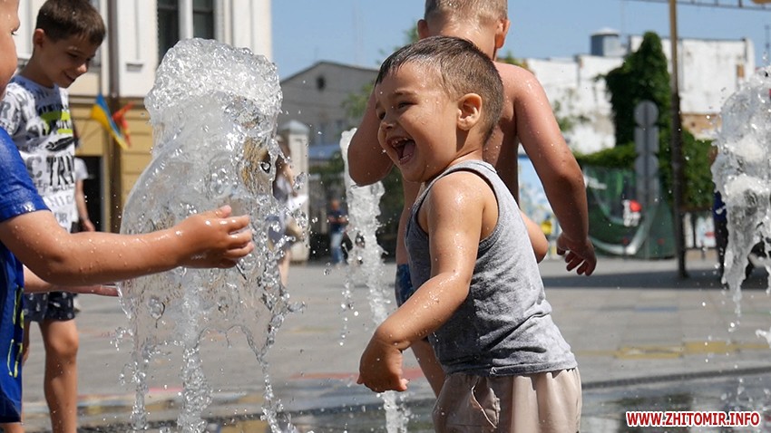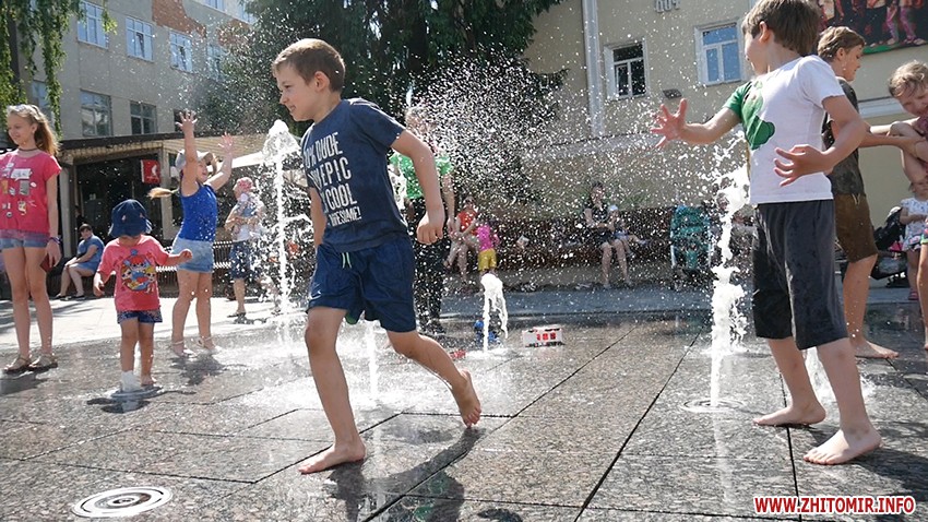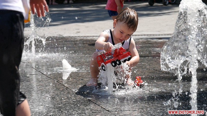 Допоки синоптики прогнозують спекотний тиждень у Житомирі, дітлахи рятуються від палючого сонця купанням у фонтані. І що не дивно, до водних забав долучаються не лише діти, а і дорослі, здебільшого матусі. Ба більше, кажуть останні, готувалися до «фонтанових процедур», взявши з собою рушники та змінний одяг.