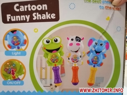 - брязкальце «Корова», артикул: 8815 А, дата виготовлення: 01.2018 р., штрих-код: 6920107099810, імпортер – відсутній;