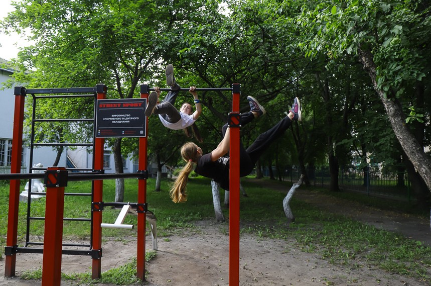 «Всі викладачі ходять по школам агітують, я раз пішла в школу, і вирішила дати оголошення у Фейсбуці та походила по спортивних майданчиках. Так і набрала дітей Фінансування не сильно велике. Тож гурток почався з того, що ми з хлопцем за свої гроші купили дітям 10 карематів. Друзі та знайомі позичали нам гирі, пояси, обтяжувачі. Пізніше я дала клич у Фейсбуці, хто може допомогти нам з установкою спортивного майданчика. Спочатку ми думали варити його самі: шукали труби, цемент, щебінь… Проте відізвалася компанія «Стріт Спорт». І вони сказали, що так як це для дітей і гурток безкоштовний, вони можуть подарувати нам невеличкий майданчик. Вони вислали нам майданчик, ми заплатили тільки за пересилку. І ми з дітьми самі його встановили. На місці, де він встановлений, був старий фундамент. Я, мої друзі та дорослі хлопці, які також займаються воркаутом, брали ломи і ми ломали фундамент. Діти також допомагали при встановленні: своїми руками його тримали, вигрібали каміння. Фактично своїми руками ми збудували базу для тренування», - розповідає тренер гуртка.