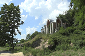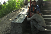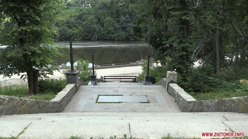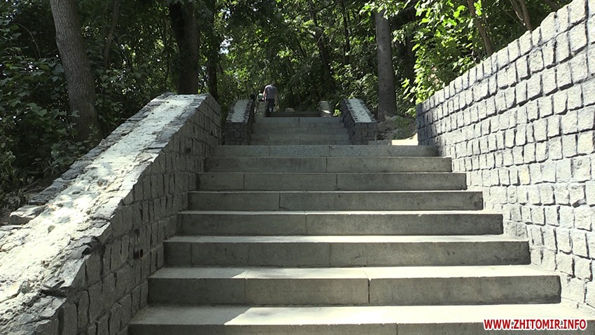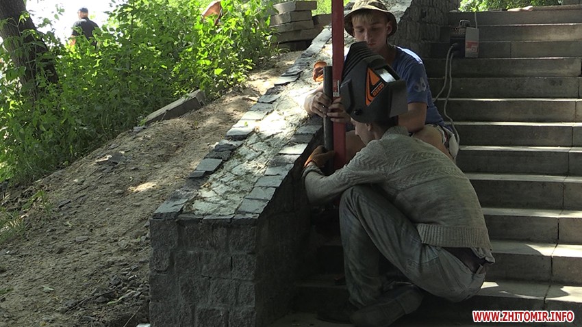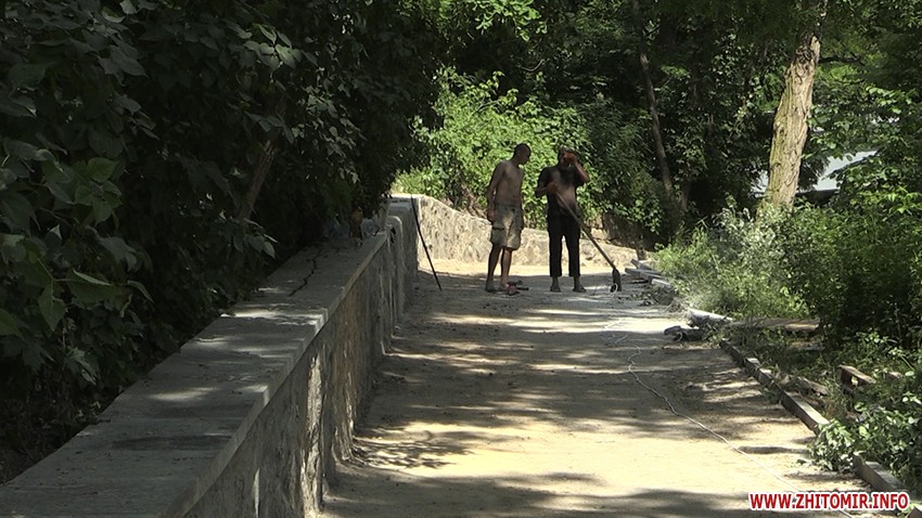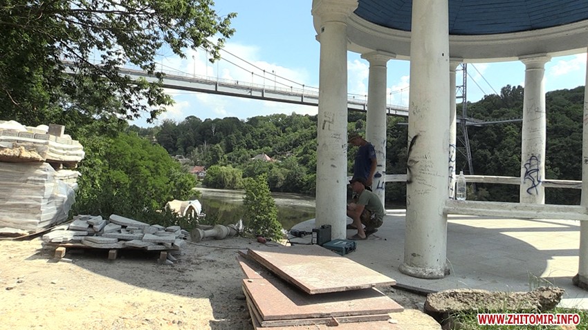 Будівельники виконують реставраційні роботи у альтанках на схилах Тетерева, продовжують облаштовувати сходи та укріплюють парапети і стінки біля доріжок, які ведуть від верхньої частини парку до самої річки - так у Житомирі триває реконструкція набережної у парку культури та відпочинку. За словами підрядників, одразу після початку виконання робіт стало зрозуміло, що ця реконструкція є непростою. Проектанти розробили унікальний проект реконструкції, але це створює і певні труднощі. Представник підрядної компанії пояснює в чому ці труднощі полягають на прикладі конструкцій, які захищатимуть житомирян від сонця у спекотні дні.