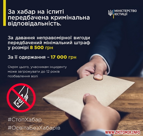 «Що робити, якщо у вас вимагають хабар за іспит? Відповідь проста – у жодному разі НЕ ДАВАТИ його! Адже відповідальність за хабар несе як той, хто його отримує, так і той, хто його дає», – нагадують в управління юстиції.
