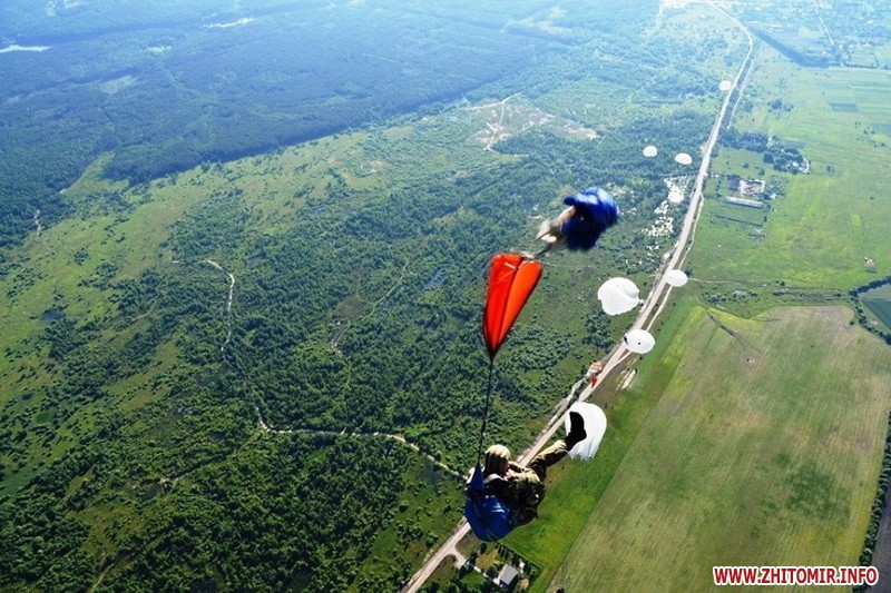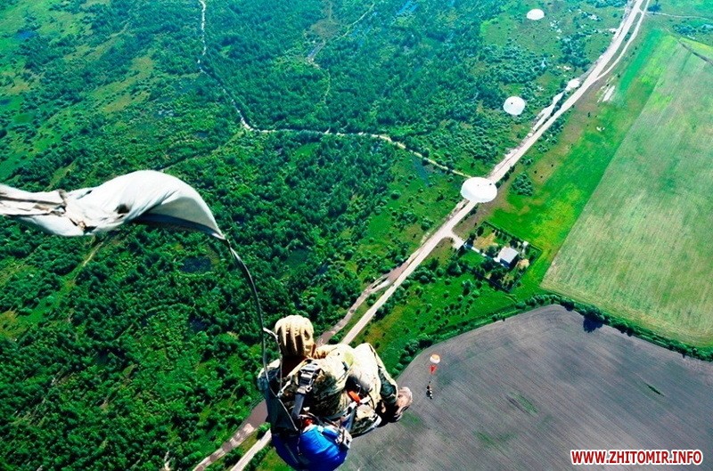 Резервісти здійснювали стрибки з парашутом пліч-о-пліч з постійним складом військових частин Десантно-штурмових військ, дислокованих на Житомирщині.