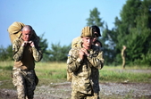 «Особовий склад оперативного резерву першої черги, що проходить навчальні збори на базі загальновійськового полігону Десантно-штурмових військ під Житомиром, здійснює стрибки з парашутом. Військовослужбовці десантуються з транспортно-бойового вертольота Мі-8 Армійської авіації Сухопутних військ ЗС України. Десантування проводиться з висоти 600 метрів для досвідчених парашутистів та 800 метрів для «першоразників», - йдеться у повідомленні.