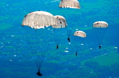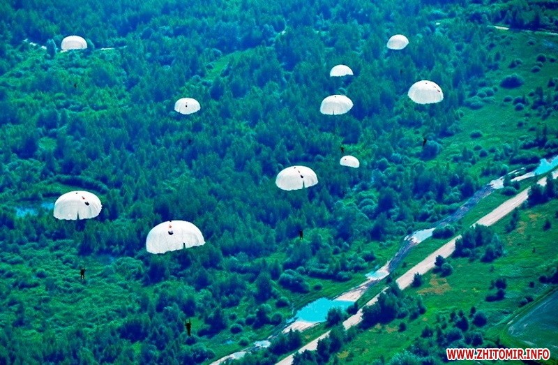 У день Трійці, 16 червня, резервісти-десантники та постійний склад військових частин виконували під Житомиром стрибки з парашутом.