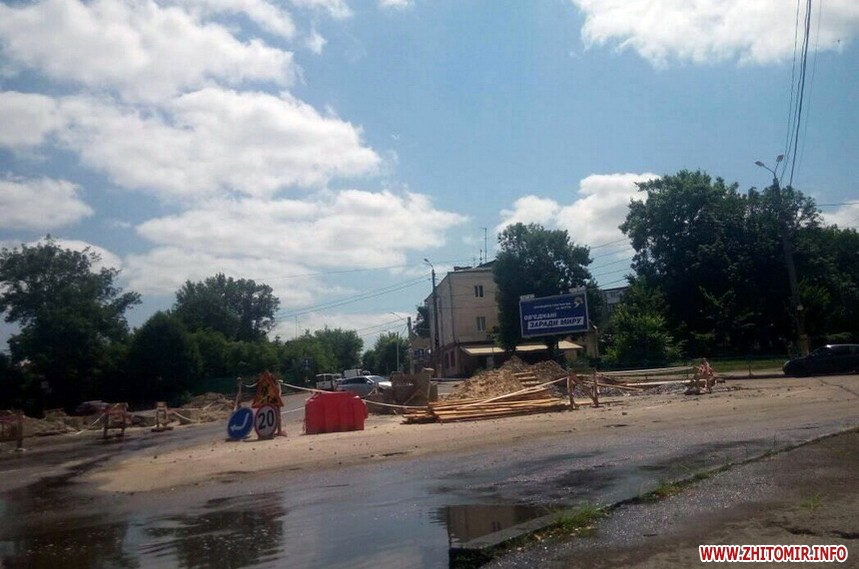 На майдані Короленка, на перехресті вулиць Перемоги і Короленка у Житомирі, майже місяць стоять розкопки, а 18 червня ще й прорвало трубу.