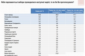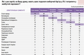 «Аудиторія: населення України від 18 років і старше. Вибірка репрезентативна за віком, статтю, регіонами і типом поселення. Вибіркова сукупність: 2000 респондентів. Особисте формалізоване інтерв’ю (face-to-face). Помилка репрезентативності дослідження: не більше 2,2%», - така методологія опитування.
