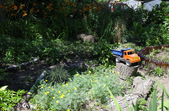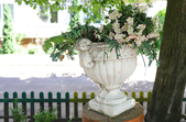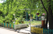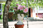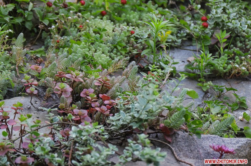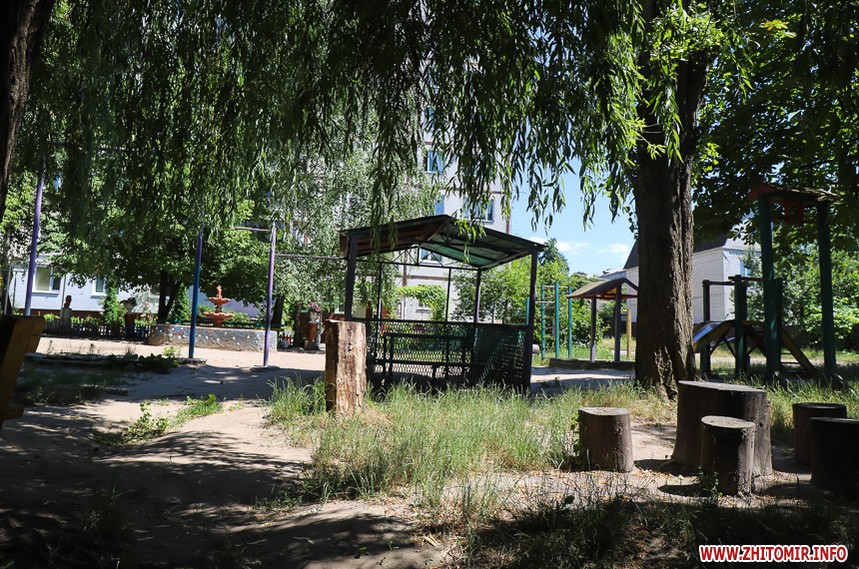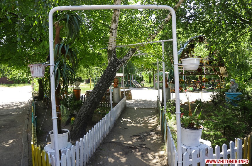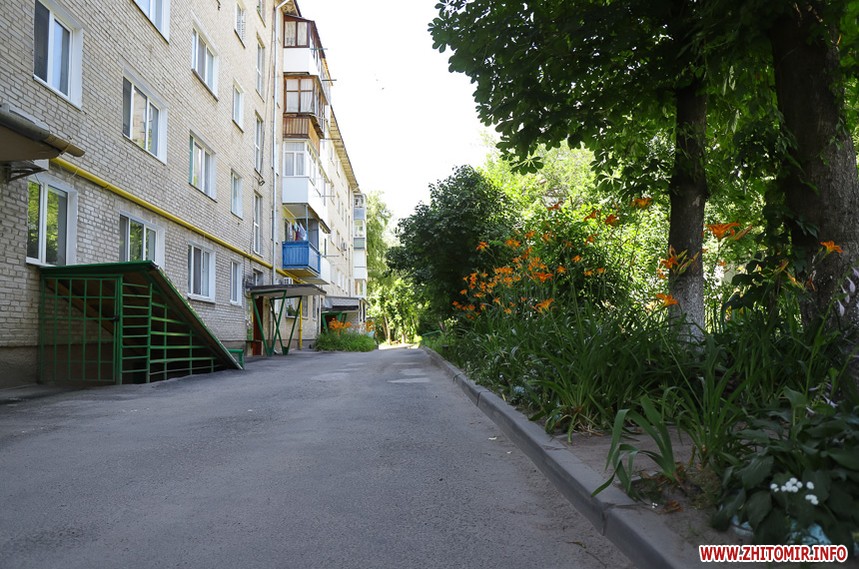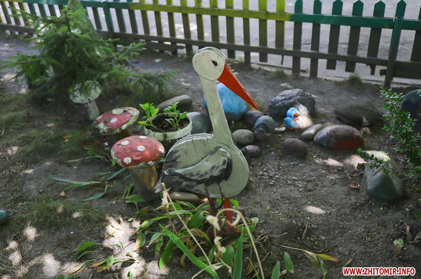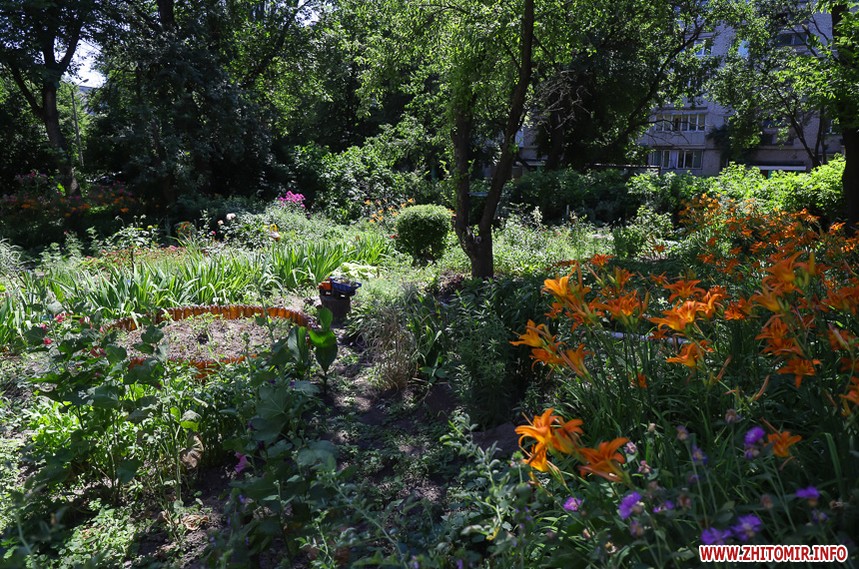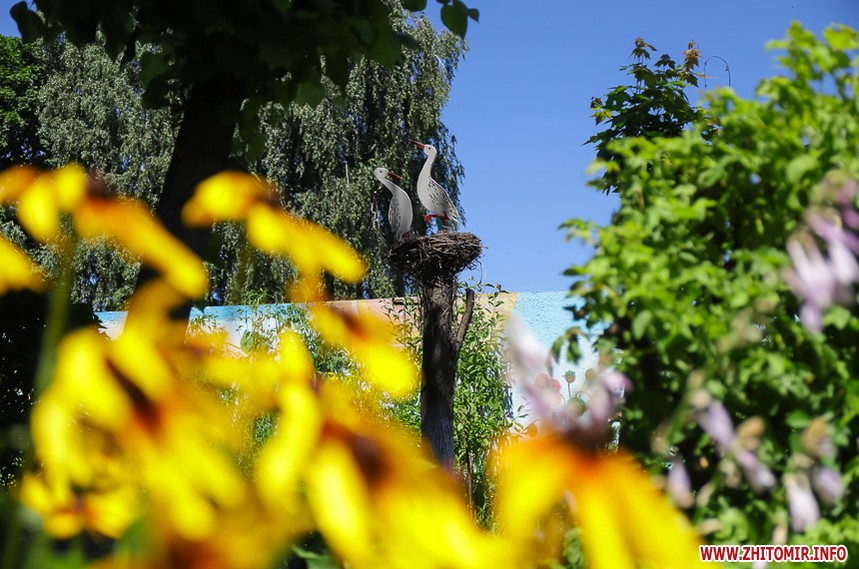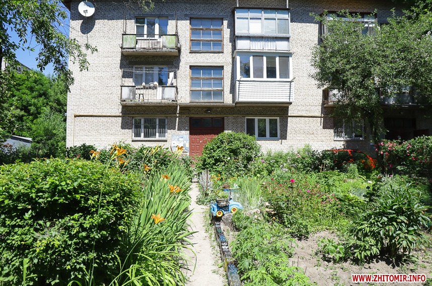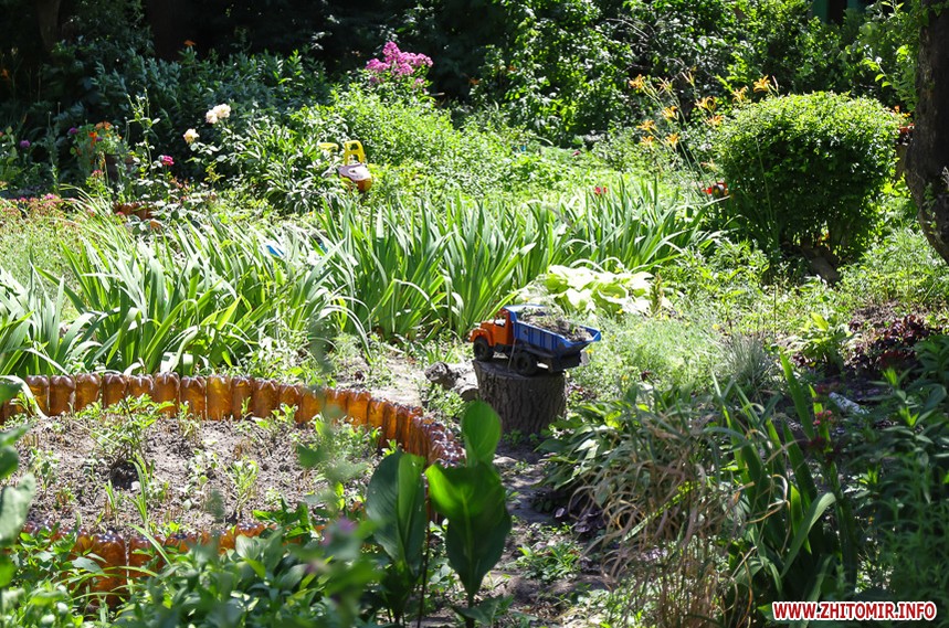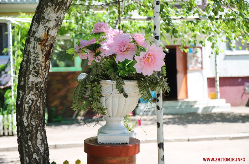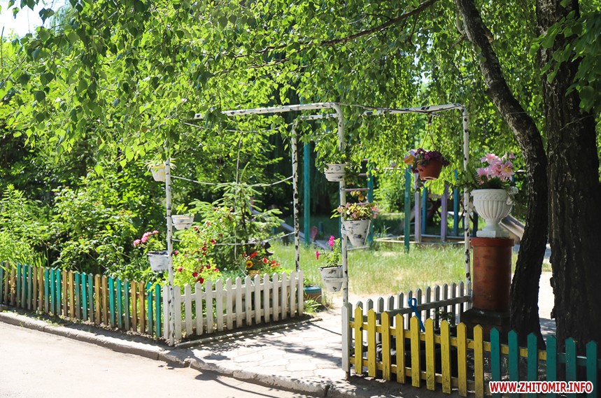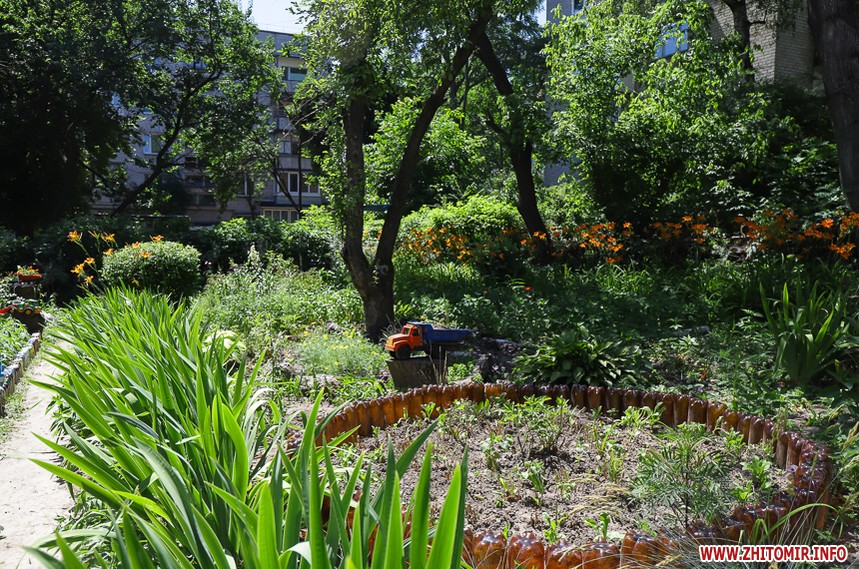 Квітники з різнобарв’ям цвіту, вазони та скульптури тварин – так прикрашають свої двори мешканці деяких багатоквартирних будинків у Житомирі.