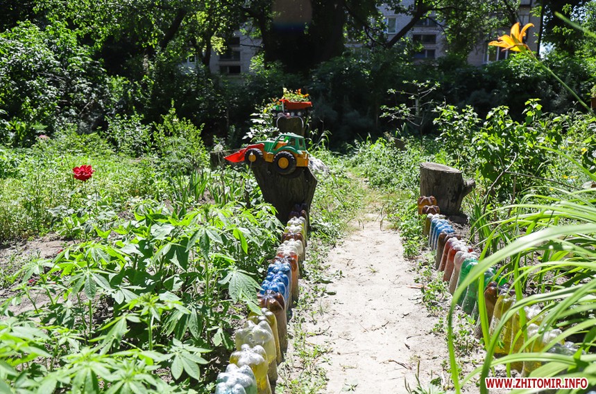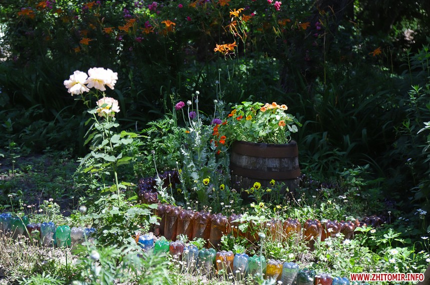 На Великій Бердичівській, 64-Б буяють незвичайні клумби: мешканці створили їх за допомогою використаних ПЕТ-пляшок.