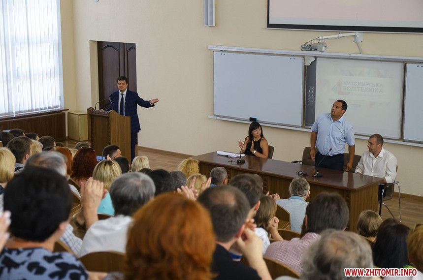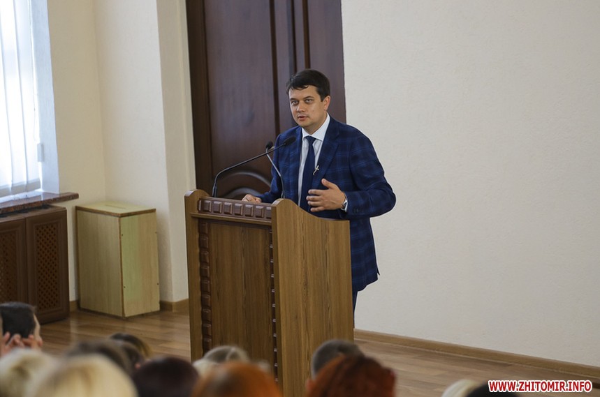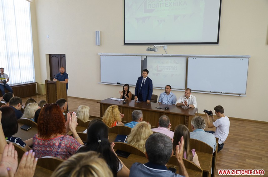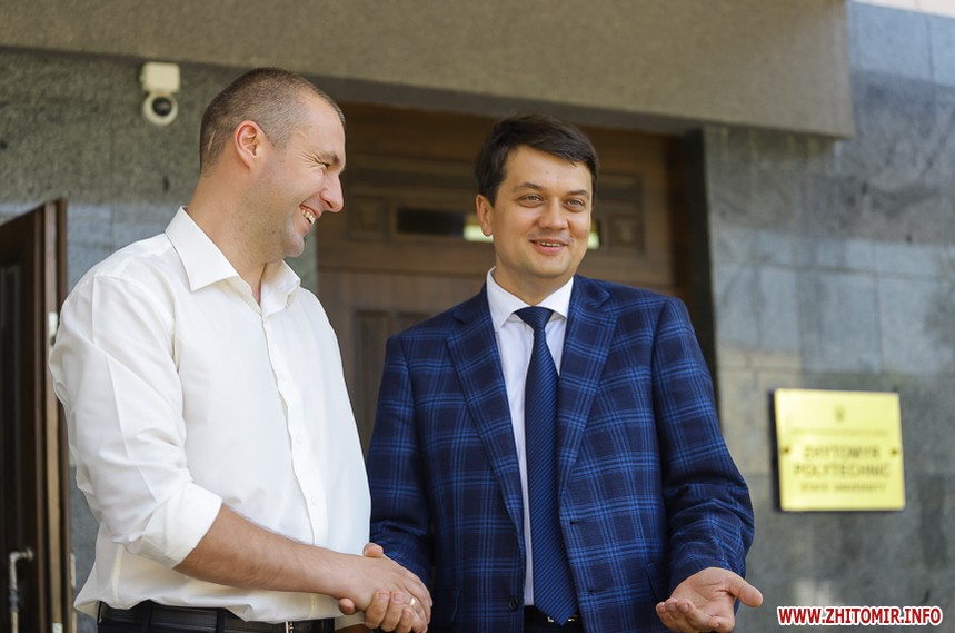 24 червня у Житомир приїздив голова політичної партії «Слуга народу», номер один у списку політсили Дмитро Разумков. Він, зокрема, відвідав Державний університету «Житомирська політехніка» та після експресекскурсії закладом поспілкувався з його викладацьким і студентським колективами.