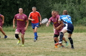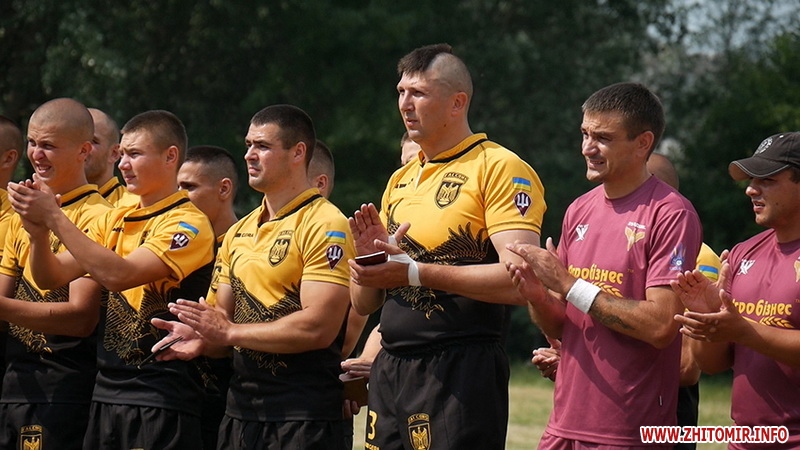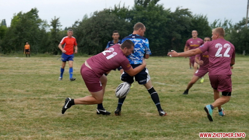 «Сьогодні ми проводимо перший чемпіонат Десантно-штурмових військ з регбі-7. На полі 7 учасників, 2 тайми по 7 хвилин. У змаганнях беруть участь команди 5-ти бригад та команда 199-го навчального центру міста Житомира. Військовослужбовців готувались місяць, у них були збори на базі житомирської 95-ї бригади. В кожній команді є свої професіонали, але не всі. На відсотків 90 усі військові були в зоні АТО та ООС. Ми знаємо, що вони разом воювали, а зараз вони разом змагаються на ігровому полі. Цей вид спорту показує усі фізичні якості: витривалість, швидкість, спритність, абсолютно усі. Всі військові за місяць вже можуть показувати результат. Цей вид спорту для десантно-штурмових військ дуже актуальний і такий, який схожий до умов на полі бою: виходить група з семи людей, виконують командні дії і захоплюють об’єкт. Тут так само, вони виходять і показують свої найкращі навички», - розповів начальник з фізичної підготовки та спорту ДШВ ЗСУ Андрій Палагін.
