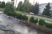 У Житомирі 27 червня біля водоканалу з-під каналізаційного люку тече вода, яка розтікається вулицею Чуднівською.