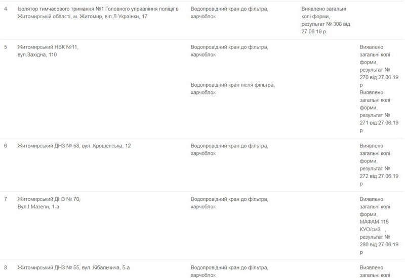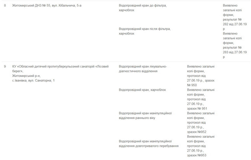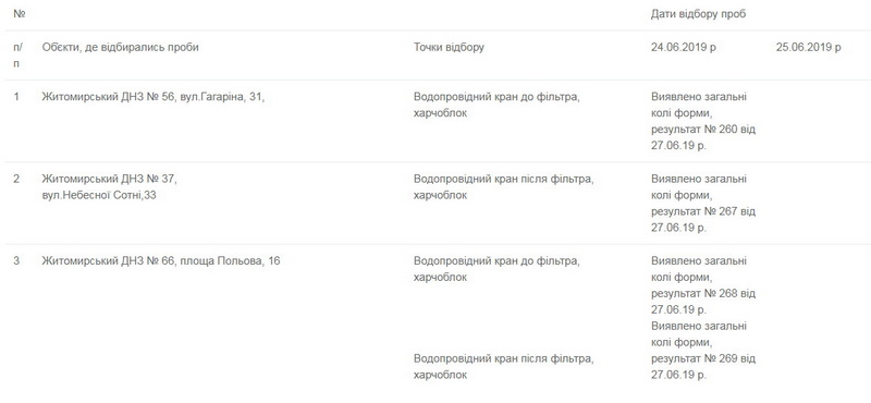 Зазначено, що 24 та 25 червня у Житомирі відібрали та дослідили 23 проби води централізованого постачання, в тому числі в харчоблоках дитячих навчальних закладів.