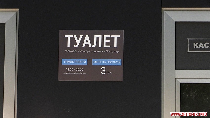 Поки на підприємстві чекають фінансування на повну реконструкцію громадської вбиральні у житомирському гідропарку, житомиряни можуть користуватись послугами модульного туалету. Щоправда за це треба буде заплатити 3 гривні. До речі, працює ця вбиральня з 12.00 – 20.00 і то не щоденно: понеділок та вівторок – вихідний.