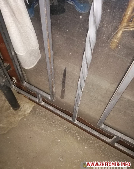 На місце події прибула слідчо-оперативна група Житомирського відділу поліції. Під час поверхневого огляду у затриманого виявили предмет, схожий на ніж. Працівники поліції зафіксували усі обставини події. Триває подальше з’ясування обставин.