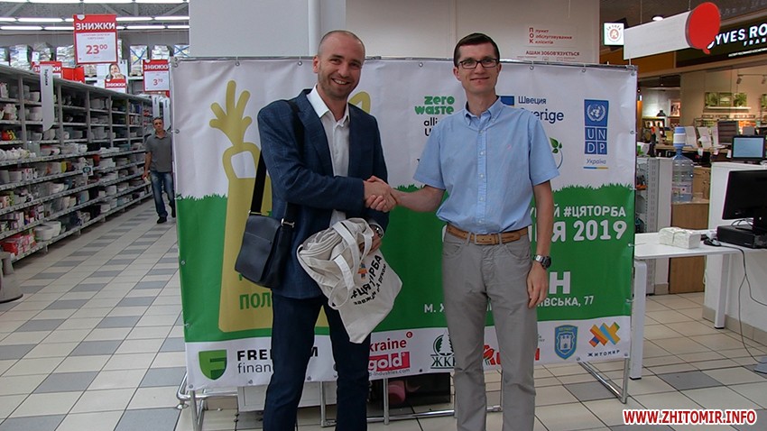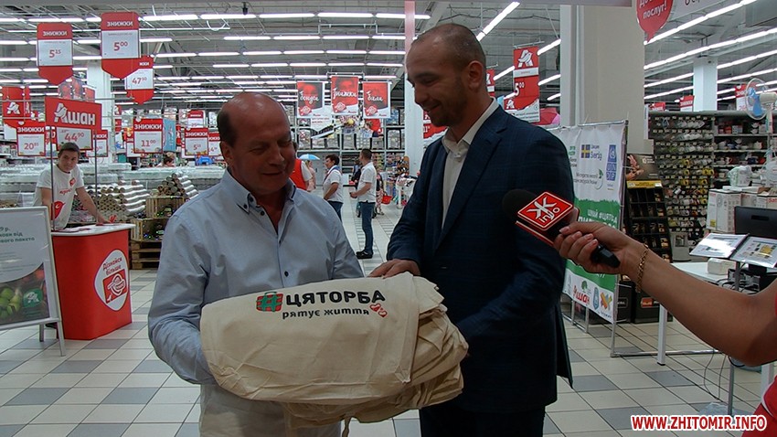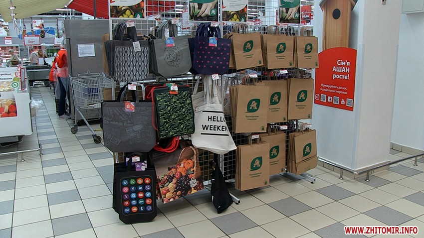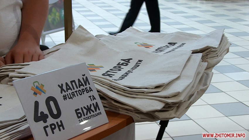 Замість звичних поліетиленових пакетів паперові, торбинки із тканини й сітки. Так проходить Міжнародний день без поліетилену в гіпермаркеті «Ашан», де за ініціативи «Житомирського Бізнес-клубу», Агенції розвитку міста та за підтримки міської влади запустили проєкт #ЦяТорба. Ініціатор ідеї Вадим Ліскі розповідає: мета проєкту - пояснити людям, що поліетилен вбиває, й життєво необхідно від нього відмовитись, якщо і не одразу, то хоч поступово.